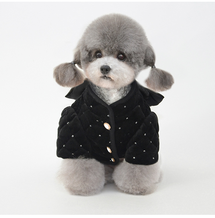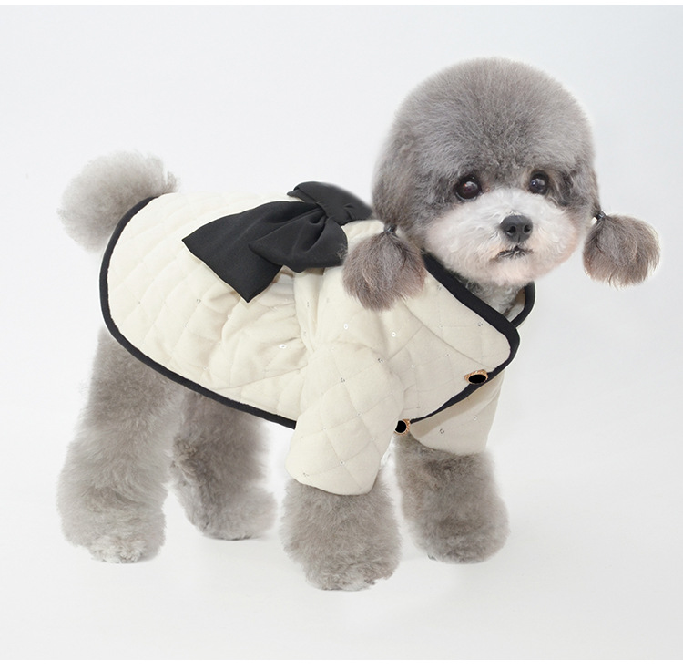 Available in two stunning colors: beige and black, each coat features an adorable sequins embroidered big bow skirt that adds a touch of flair. Your pet will not only feel warm but also look fabulous in this Japanese and Korean style coat.